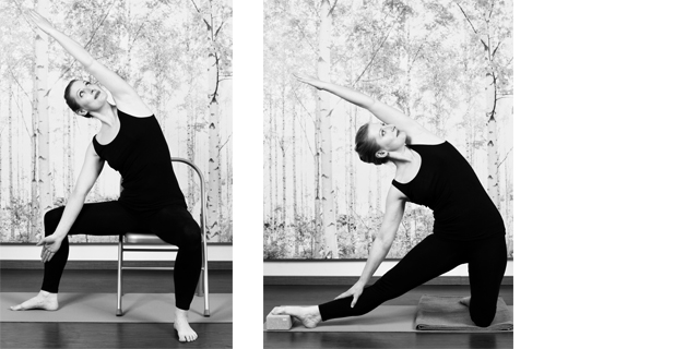 Parsvottanasana mit Stuhl / Supta Padangusthasana I mit Gurt